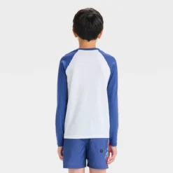 For unlimited fun under the sun, your child will love wearing this Solid Raglan Long-Sleeve Rash Guard Top from art class™. This long-sleeve rash guard is made from recycled polyester-spandex blend jersey fabric for stretchy comfort in or out of the water, while the UPF 50+ material helps keep their skin shielded from the sun. Designed with raglan sleeves in a contrasting hue and featuring a chest patch pocket, this crewneck rash guard top easily coordinates with different swimwear.