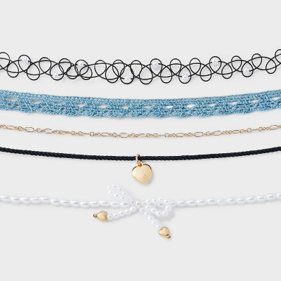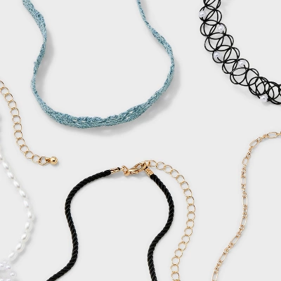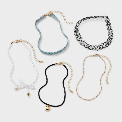 Add a touch of flair to any outfit with this Girls’ 5pk Choker Necklace Set – Art Class™. Crafted from a mix of polyester, zinc alloy, iron and acrylic, these necklaces offer a variety of styles to suit any mood. The multi-colored designs add a playful pop, while the pull-on and lobster claw clasps ensure easy wear. Perfect for kids and teens looking to express their unique style.