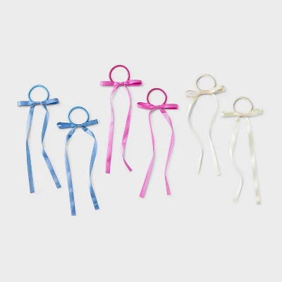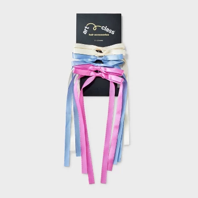 Add a playful touch to any hairstyle with this Girls’ 6pk Bow Pony Holder Set – Art Class™. Designed for kids aged 3 and up, these multi-colored ponytail holders are perfect for all hair types. Crafted with a blend of polyester, recycled polyester and elastic, they offer a secure and comfortable fit. Whether for school or play, these vibrant accessories add a splash of color to any outfit.