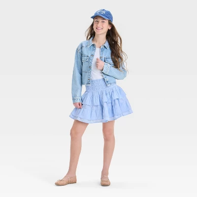 Level up their fashion game with this Smocked Waist Tiered Circle Skirt from art class™. Made from 100% cotton, this classic-rise skirt features a tiered design and provides all-day comfort. Featuring an elastic waistband for a snug fit, this regular-fit skirt pairs well with a variety of tops and tees for an adorable look.