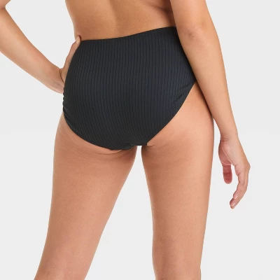 - High-waist, ribbed bikini bottom in solid color