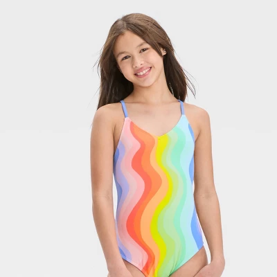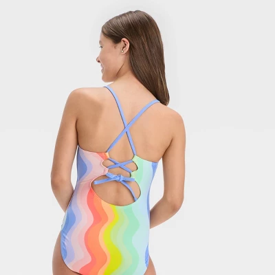 Bring sweet style and easygoing vibes to their swimwear collection with this Striped Wavy Fun One-Piece Swimsuit from art class™. This one-piece swimsuit features a striped wavy pattern, along with back cut-out detailing for a cute look. It’s crafted from stretchy fabric with opaque lining and adjustable straps to provide them with a comfortable fit. Plus, the UPF 50+ rating keeps them protected from the sun. They’ll pair with their favorite sunnies and a wide-brim hat to take the swim look to the next level.