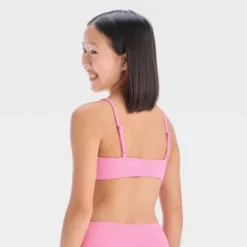 The Tropical Island Swimsuit Top from art class™ is the perfect addition to your kid’s sunny wardrobe. The swimsuit top features a variegated ribbed pattern and a front cinched detailing for an elevated look. Removable cups and adjustable straps help customize their coverage while the 4-way stretch fabric with full lining offers flexible comfort. Designed with a pullover style, this bralette swimsuit top helps them stay shielded from UV rays with the UPF 50+ rated design.